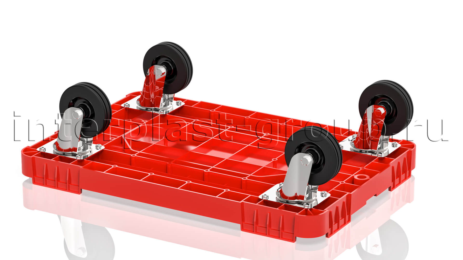Тележка пластиковая сплошная без тормозов красная в Махачкале