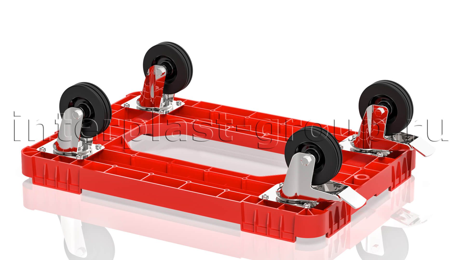 Тележка пластиковая с отверстием 2 колеса с тормозом красная