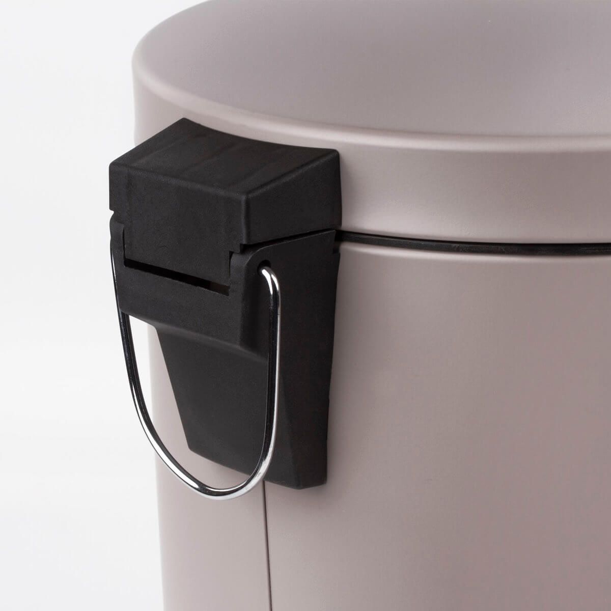 Внутреннее съемное пластиковое ведро оснащено удобной рукояткой, что упрощает процесс извлечения мусора.
